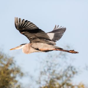 In flight, its broad wings beat in slow, steady rhythms, and its graceful silhouette—neck tucked in an S-curve, legs trailing behind—is a familiar sight along Floyds Fork.